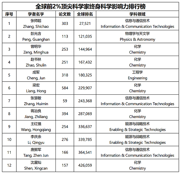 全球前2%顶尖科学家榜单通过基于其论文引用数、h因子、单独或第一作者的文章引用数等综合参数进行遴选,其中“终身影响力”榜单统计科学家职业生涯期间的综合表现,“年度影响力”榜单则聚焦上一年度的学术影响力。