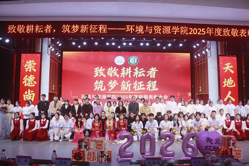 12月24日下午,环境与资源学院2025年度致敬表彰大会在雁山校区音乐学院3楼演艺厅隆重举行。学院领导班子成员、教师代表、受表彰师生及本研学生代表齐聚一堂,共话成长硕果,共启奋进新程。