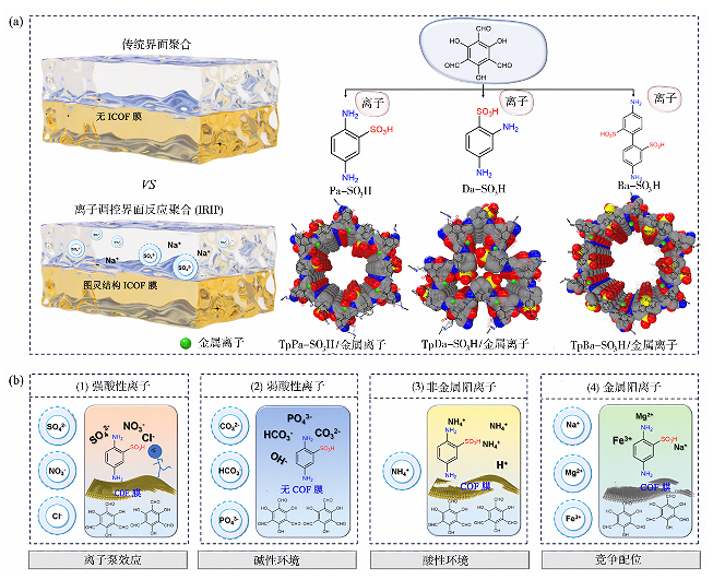 在膜分离技术持续追求高选择性、高通量、高稳定性的背景下,共价有机框架(COF)材料因其规整的孔道结构和高度可设计的骨架,已成为新一代膜材料的研究热点。COF膜具有明确的周期性孔道和可调的拓扑结构,在分子筛分、溶剂纳滤及离子分离等领域展现出显著的应用潜力。因此,实现高质量COF膜的可控制备,已成为推动其应用发展的关键科学问题。本文围绕液-液界面法制备COF膜的研究进展,从制备方法、形成机理及其调控机制两个维度出发,重点针对COF膜的单体选择与结构设计、溶剂体系对COF膜形成的影响、催化剂与界面微环境在COF膜制备中的应用、温度对COF膜生长与结构演化的调控和外场与辅助策略对COF膜形成的调控五个核心难题,系统梳理了影响膜结构与性能的关键因素,旨在为高性能COF膜的设计与可控制备提供理论参考与策略指导。